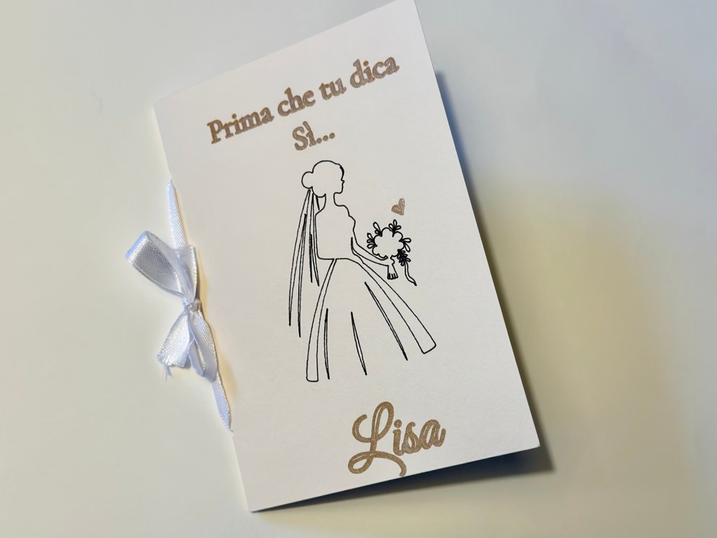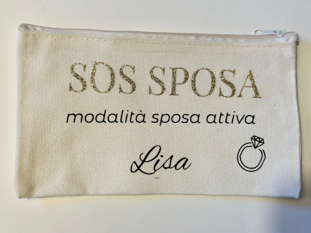 Il nome della sposa può essere personalizzato. É possibile scegliere i colori in base alla disponibilità.